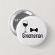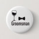 A sharp, minimalist button pin for the groomsmen. It features black icons of a wine glass and a bow tie above the bold text "Groomsman," making it a stylish accessory for the bachelor party or wedding events.