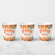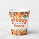 A groovy retro party paper cup. This colourful 60's/70s vibe floral design features flower power florals in orange and blue. Easy to customise with your own groovy or retro themed party details.