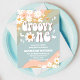 Celebrate your little ones special day with this retro-inspired "Groovy One- birthday invitation. Featuring wavy pastel stripes, daisies, peace signs, butterflies, and smiley flowers, this 1970s design brings peace, love, and fun to your party. Perfect for a first birthday celebration, this colourful boho invite sets the tone for a cheerful and whimsical event. Customise with your party details and make your childs milestone unforgettable.