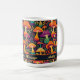 This personalised coffee mug is the perfect gift for someone who likes groovy 70s designs! It features a pattern of far-out psychedelic mushrooms in red, yellow, orange, purple, and aqua green. The editable text allows you to customise it with names or any message you wish.