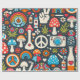 Groovy 70s Pattern With Peace Signs and Mushrooms Wrapping Paper