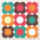 Retro-inspired floral pattern featuring bold geometric flowers in warm earthy tones. Perfect for home decor, fabric, stationery, and modern boho designs. Eye-catching mid-century style that adds a trendy vintage touch to any product.