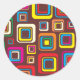 Groovy 70s Tile Pattern Squares On Brown Classic Round Sticker