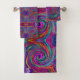 Groovy Abstract Retro Magenta Dark Rainbow Swirl Bath Towel Set
