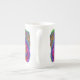 Groovy, colourful fractal with the word PEACE on it, adorning a bone china mug.