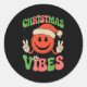 Groovy Christmas Vibes Smile Face Santa Hat Xmas T Classic Round Sticker
