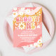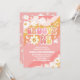 Celebrate your little ones special day with this retro groovy first birthday invitation! Featuring wavy pink, orange, and yellow stripes, playful daisies, peace signs, hearts, and stars, this cheerful design captures the fun of the 70s. The whimsical font and vibrant colours make it perfect for a boho, hippie, or flower power themed party. Easily customisable with your party details, this invitation sets the tone for a joyful and unforgettable celebration.