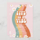 Retro inspired Five is a Vibe Groovy 5th birthday invitation with hippie style rainbow, daisies and boho fonts and colours.