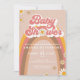 Baby Shower invitation card with a cute groovy style. For further customisation, please click the "customise further" link and use our design tool to modify this template.