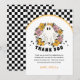 Add a touch of retro charm to your Halloween celebration with this groovy thank you card, featuring a cute ghost with flowers and a playful vintage vibe — perfect for a girl’s spooky birthday party.