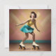 Pictured Is A Pretty Redhead Roller Skating Backwards