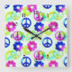 Groovy Hippie Peace Signs Flower Power Aqua Square Wall Clock