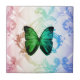 Groovy Hippie rainbow boho teal green butterfly Ceramic Tile