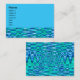 Turquoise and blue abstract. Colourful card design for business or personal use. Add your MySpace, Facebook or LinkedIn information to this artistic profile card. Or use this colourful art card for your own unique business cards or calling cards. This digital abstract art design will definately make your business card stand out with your friends, clients and customers. Business cards are made with 2-sided, full colour printing. 10 types of card stock are available including standard, premium or luxury. Business cards are customisable, you can change the font style size and colour. Volume Discount available when you buy in bulk.