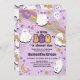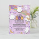 Celebrate Halloween with this Groovy Little Boo Baby Shower Invitation! Featuring playful ghosts, a sparkling disco ball, a purple pumpkin, a glowing moon, small stars, and dainty flowers, all set against a vibrant purple background, this invitation brings a fun retro vibe to your baby shower. BBS492