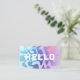 Hello in a bold font in white, on an asymmetric abstract design in pastel pink, pale blue, lavender and yellow, with a metallic effect from the gradient art.