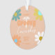 Groovy Nurse Coworker Fun Personalised Christmas Ornament. It has a cool design with a orange pastel peach background and daisy flowers in colours of teal blue, yellow and white. A white medical caduceus symbol is on upper centre. The text is "groovy coworker" in thick curvy lettering mixed with trendy hand lettered script. Name and custom year is in matching orange simple font letters on lower centre. Your signature "from" name is across the bottom area. CLICK PERSONALIZE OPTION AND FOLLOW THE PROMPTS.