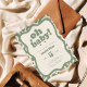 Celebrate your new arrival with a touch of nature-inspired retro style. This Sage Green "Oh Baby!" Invitation combines a trendy, earthy color palette with a funky 70s groovy aesthetic. The playful wavy borders and vintage typography make it an excellent choice for gender-neutral showers, boho "Greenery" themes, or any stylish autumn event. Stand out from the crowd with an invitation that is both sophisticated and fun!