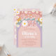 Retro-themed birthday invitation features muted tones of Rainbow colours, and Daisy flowers in the background. It's perfect for a girl's 1st retro 70s-themed birthday party.