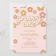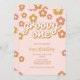 Modern first birthday girl invitation. Retro inspired groovy one themed first birthday party with hippie style colours, daisy flowers and boho fonts.