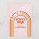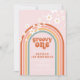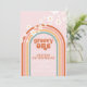 Retro inspired groovy one first birthday invitation with hippie style rainbow, daisies and boho fonts and colours.
