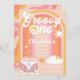 ♥️ This adorable Groovy Invitation is great for a girl's first birthday party themed with muted pink rainbow colours and a hippie van. A matching design is included for the backside.