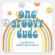 Groovy One Retro inspired first birthday stickers with 70's style fonts and colours rainbow and peace signs.