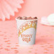 Retro inspired Groovy One first birthday paper cups with 70's style daisies and boho fonts and colours.