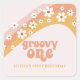 groovy one Retro Daisy Boho Rainbow Square Sticker