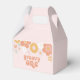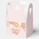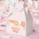 Retro inspired Groovy One first birthday favour boxes with 70's style flowers and boho fonts and colours.
