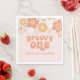 Retro inspired Groovy One first birthday napkins with 70's style flowers and boho fonts and colours.
