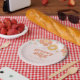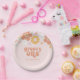 Retro inspired Groovy One first birthday plates with 70's style flowers and boho fonts and colours.