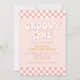 One Groovy Girl Retro inspired first birthday invitation with 70's style fonts and daisies and chequered pattern.