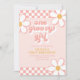 One Groovy Girl Retro inspired first birthday invitation with 70's style fonts and daisies and chequered pattern.