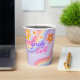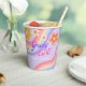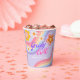 Groovy One Retro Rainbow 1st Birthday Paper Cups in purple background for baby girls