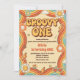 Groovy One Retro Rainbow 1st Birthday Party Invitation