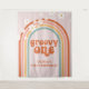 Retro Rainbow Groovy One 1st birthday party sign with boho daisies.