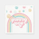 Groovy One Retro rainbow inspired first birthday napkins with 70's style fonts and colours.