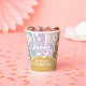 Groovy One Retro Sunshine Rainbow 1st birthday paper cups with boho daisies.