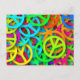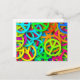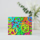 Postcard with a sixties vibe. Cool peace signs in bright and vibrant colours featuring all the colours of the rainbow.