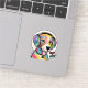 This vibrant and colorful cartoon sticker features a cute puppy wearing headphones. The puppy's fur is a mix of bright colors and patterns, giving it a groovy and retro vibe. The sticker is perfect for adding a touch of personality and fun to your belongings or sharing with a dog lover.