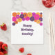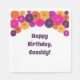 Add a flower power touch to any party with personalised napkins. These napkins have fun retro style daisy graphics in shades of purple, pink, orange and yellow with your custom message below in coordinating purple lettering.