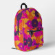 This groovy backpack features an all over pattern inspired by the hippie era with daisy style flowers in shades of purple, orange, yellow and bright pink