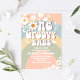 Celebrate your little ones big milestone with this retro pastel rainbow first birthday invitation. Featuring groovy 70s-inspired fonts, cheerful daisies, butterflies, peace signs, and colourful arches, this design brings peace, love, and fun to your party details. Perfect for boho, retro, or hippie-themed celebrations, this customisable invite sets the tone for a joyful and stylish birthday gathering.