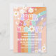 Celebrate your little ones special day with this retro-inspired groovy birthday invitation! Featuring a vibrant rainbow background, playful daisies, stars, hearts, butterflies, and bold retro fonts, this design radiates peace, love, and fun. Perfect for a 4th birthday party, it sets the tone for a cheerful, nostalgic celebration that guests will adore. Customise with your childs name, party details, and RSVP information to create a one-of-a-kind invitation thats both stylish and memorable.