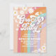 Celebrate in retro style with this groovy rainbow birthday invitation featuring pastel colours, playful daisies, peace signs, butterflies, and stars. Perfect for a 1st birthday or any fun party, this vibrant design captures the spirit of peace, love, and happiness. Guests will adore the whimsical retro vibe, making your celebration unforgettable. Customise with your party details for a unique, eye-catching invitation that sets the tone for a joyful event.
