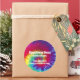 Make a groovy good impression with this 1960s theme tie dye sticker. A rainbow tie dye swirl background sets off the white retro looking text. Great promotion for a store or business specialising in retro items, tie dye, or artwork. Use as envelope seals or on packaging. Available with matching items.