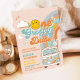 Celebrate your little ones milestone with this retro-inspired 1st birthday invitation featuring a pastel rainbow backdrop, peace signs, smiley faces, and vintage 70s vibes. Perfect for a fun and colourful party, this groovy design sets the tone for peace, love, and joy. Personalise with your event details and impress guests with a unique, eye-catching card that captures the spirit of celebration. Ideal for babys first birthday, this invitation blends nostalgia with modern charm to make your party unforgettable.