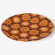 Groovy retro 70s boho hippie orange flower pattern paper plate