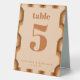 Groovy Retro 70s Design in Brown and Sand Wedding Table Tent Sign